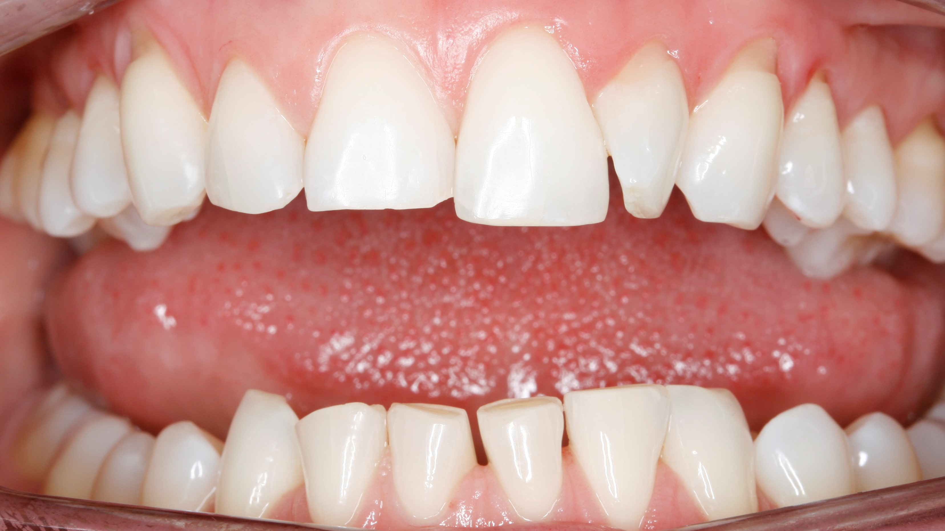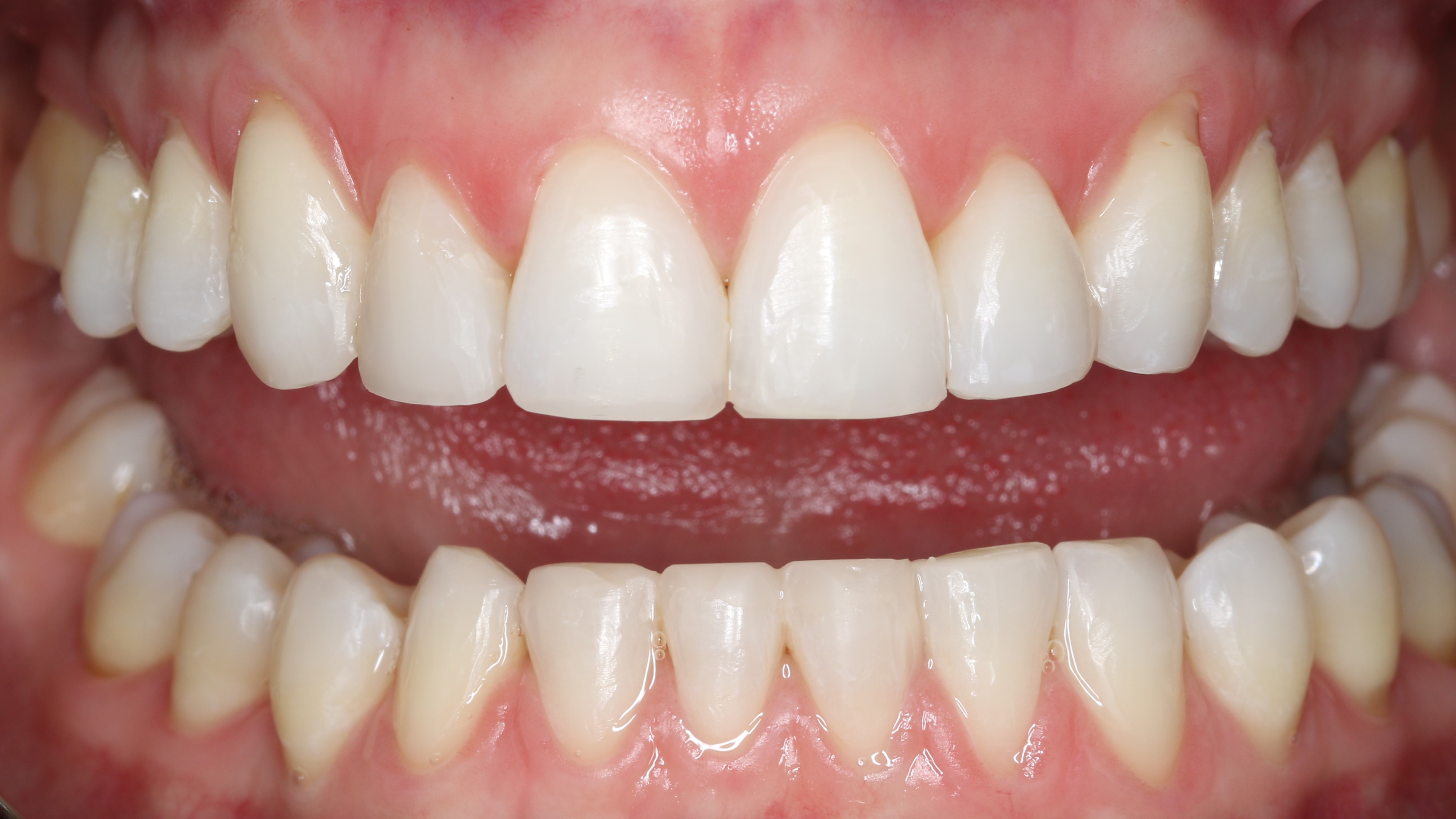 FASTBRACES® on upper and lower arches followed by composite edging, fixed and removable retainers