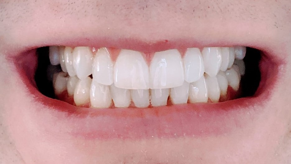 Metal FASTBRACES® on upper arch followed by Zoom! Teeth Whitening, composite edging, fixed and removable retainer